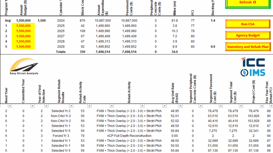 By admin0ICC-IMS’ Easy Street Analysis (ESA™) combines the core analysis capabilities of advanced pavement management systems with the ease and flexibility of a Microsoft® Excel environment. ESA™ provides agencies with actionable…